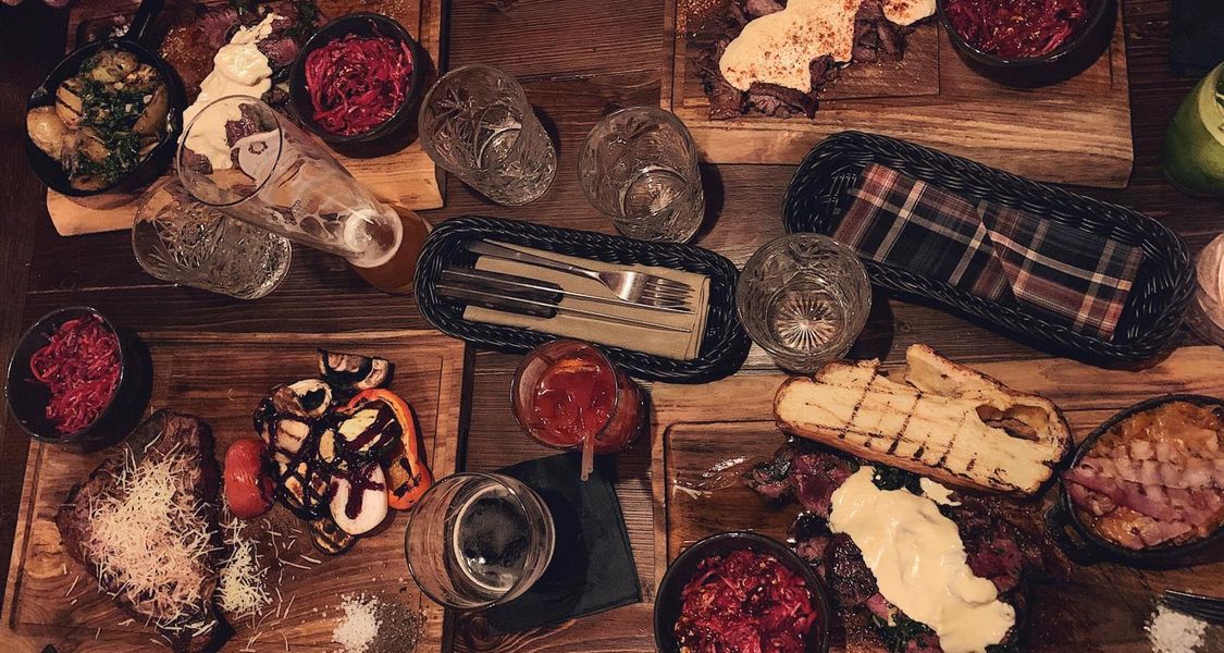 Основное место в меню занимают различные виды стейков, которые отлично дополняются брутальными коктейлями и хорошим вином. Мясо готовится на дровяном гриле, никакого электричества и газа.