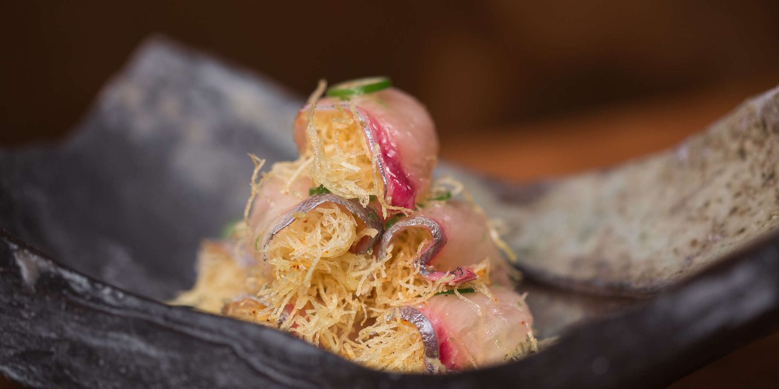 В баре Masa царит непринужденная атмосфера: барная стойка из цельной доски африканского дерева бубинга, стены из японского известняка Оя — естественная простота является идеальным фоном для меню à la carte, состоящего из свежих экспериментальных подходов Маса к аутентичной японской кухне.