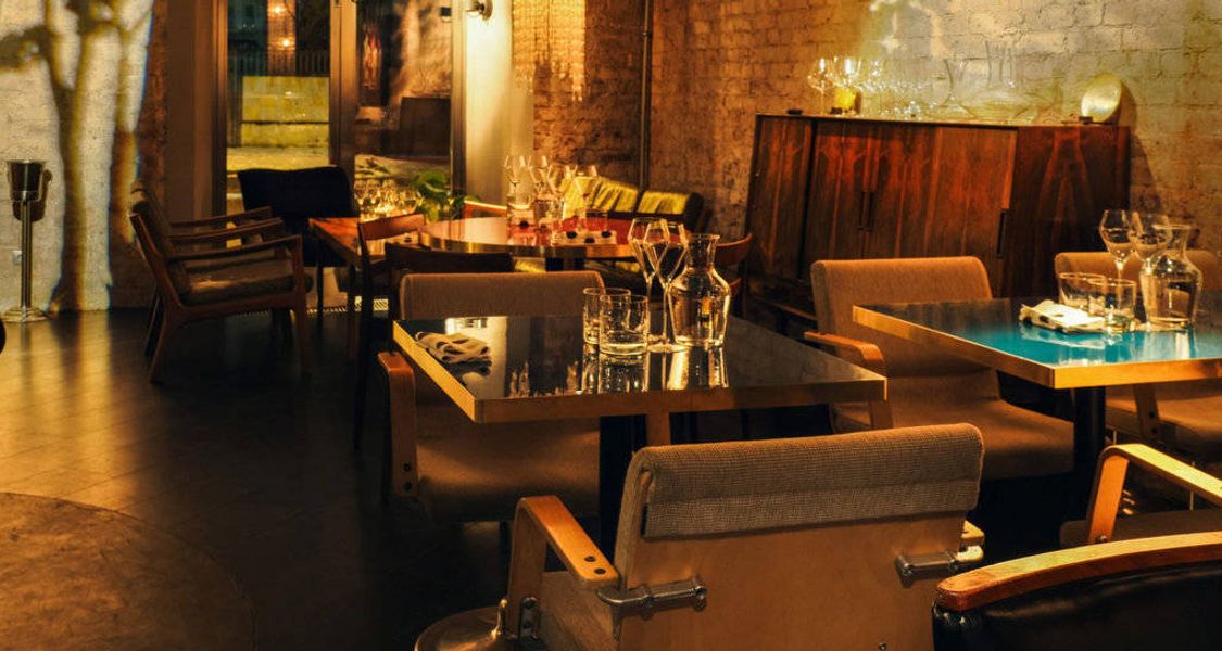 Интерьер заведения выполнен в лофтовой стилистике, с большим количеством стекла, металла и дерева. В главном зале на фоне необработанного кирпича выделяется широкая изогнутая барная стойка и несколько больших хрустальных светильников, низко свисающих с потолка.