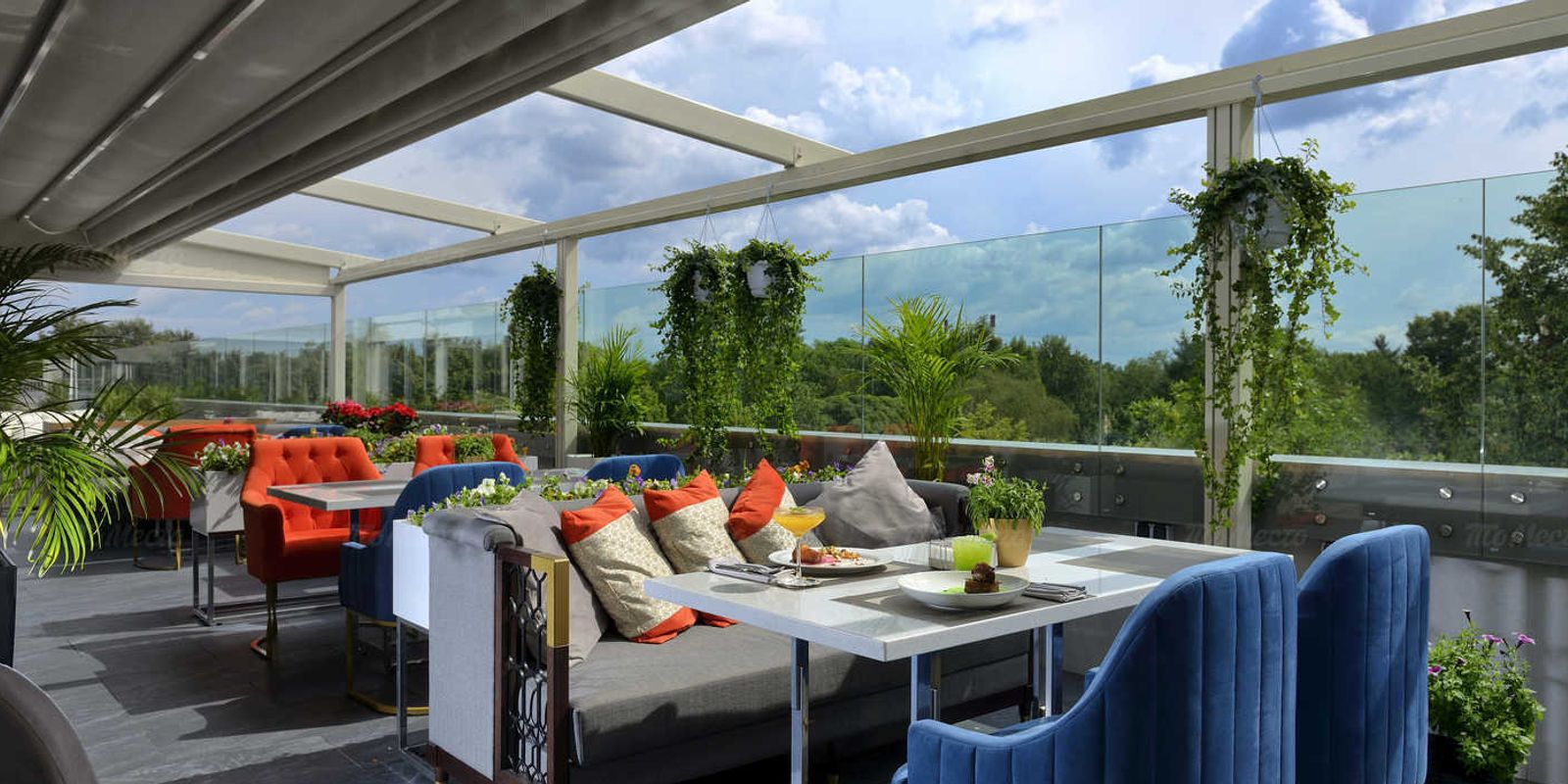 Это необыкновенно стильное место с оригинальной кухней, двумя террасами на крыше и роскошным интерьером в стиле северного модерна, кубизма и футуризма.