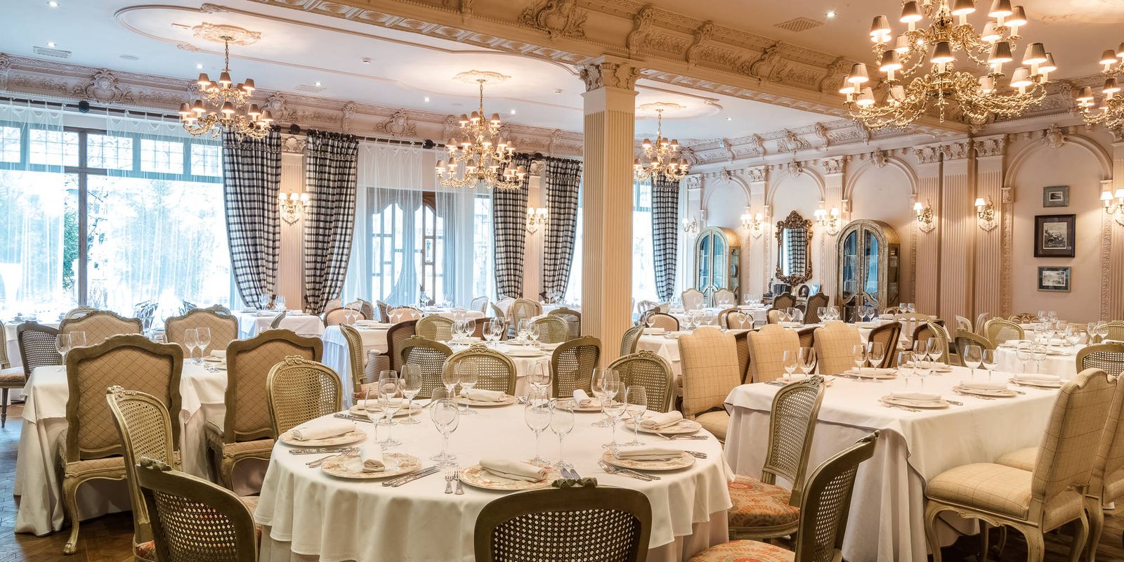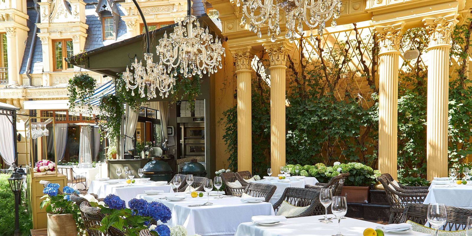 Интерьеры заведения, разработанные Megre Interiors, в меру аристократичны и при этом непосредственны, что делает их по-домашнему уютными. Здесь гармонично уживаются изысканный декор из лепнины и пудровые стены, классическая европейская мебель и грубые клетчатые шторы, бликующий хрусталь люстр и стиль винтаж.