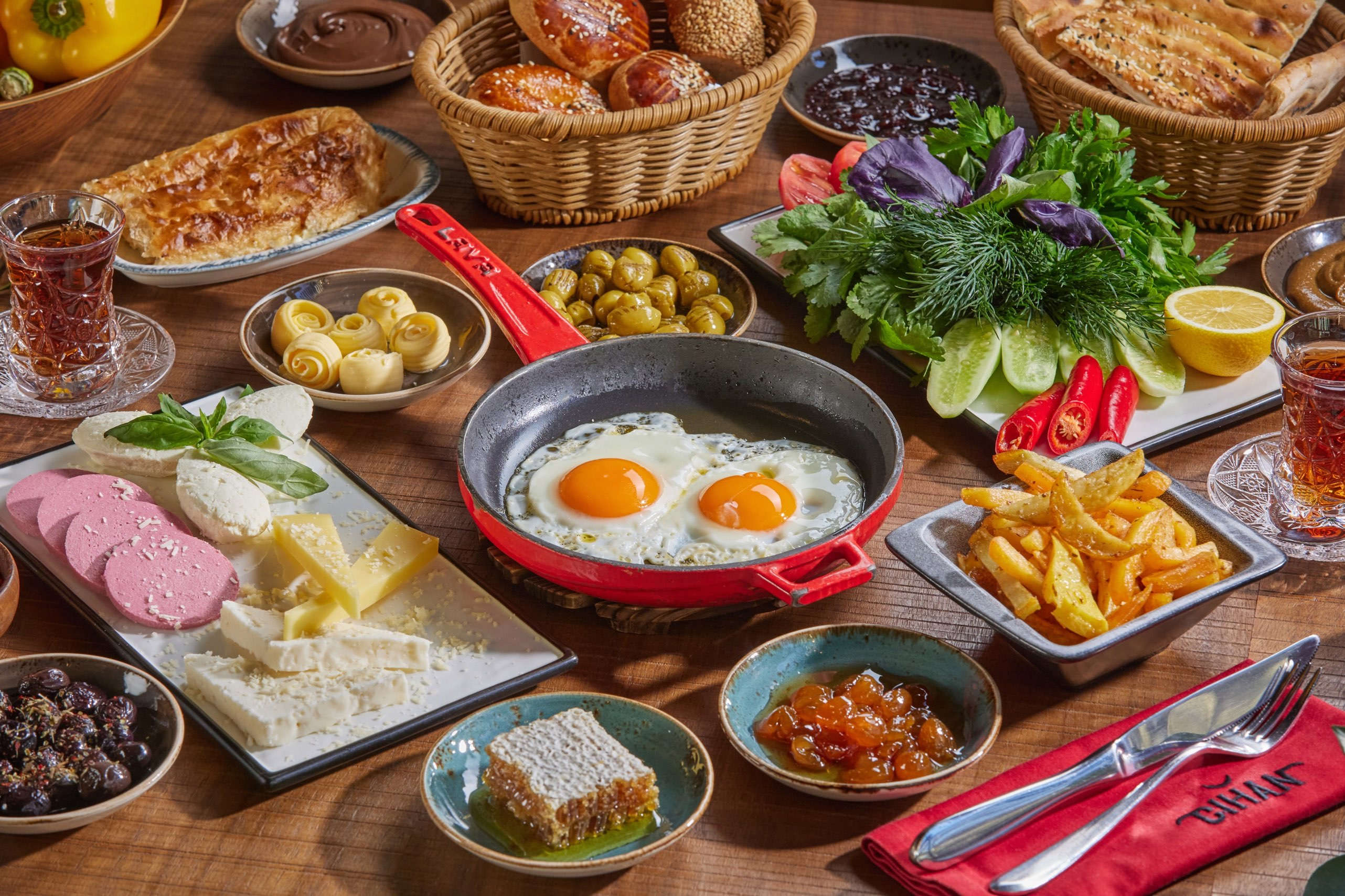 В новом проекте команда продолжает придерживаться своей уникальной гастрономической концепции, сочетающая в себе аутентичные рецептуры, любовно собранные из разных уголков Турции и современные кулинарные тренды. Бренд-шеф Джихан Дениз бережно собрал в меню сокровенные гастрономические турецкие традиции: мезе с воздушными лепешками из тандыра, разнообразие стейков – от классических до альтернативных, Wet Aged из собственного шкафа вызревания, вариации кефте из рубленого мяса, ароматные блюдах на углях, колоритные лодочки пиде, пикантный лахмаджун, более пятнадцати видов кебабов и фирменные бургеры с щедрыми порциями сыра.