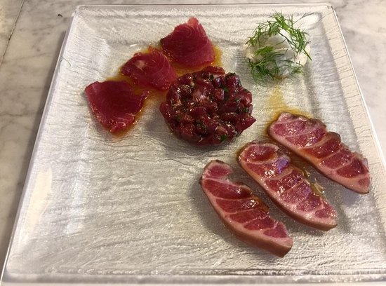 В меню заведения представлена сложная и динамичная французская кухня в духе времени. Здесь все: фуа-гра с карамелизированным яблоком, сырный суп с уткой, телячья голова в соусе равигот, лингвини с солнечником под соусом нантуа, ассорти французских блинчиков с черной икрой и белыми грибами и др.