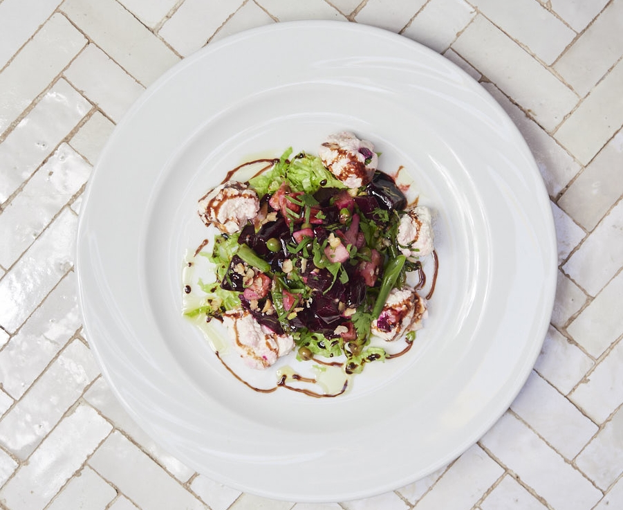 В меню представлены блюда франко-марокканской кухни в стиле фьюжн. Здесь непременно стоит попробовать тыквенный салат с тахини, йогуртом и свежим перцем чили, тушеного кролика с горчичным соусом, филе умбрины с соусом из креветок и шафрана, а также великолепный шоколадный пирог.