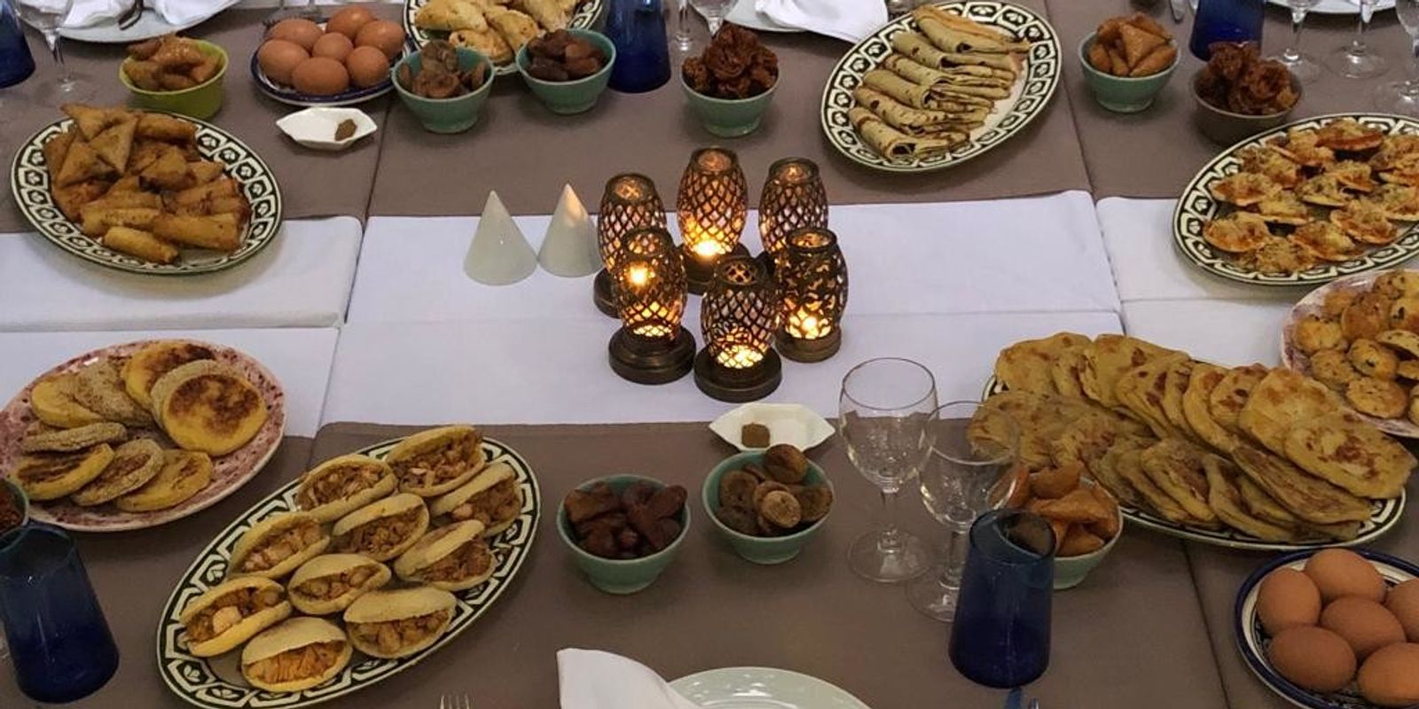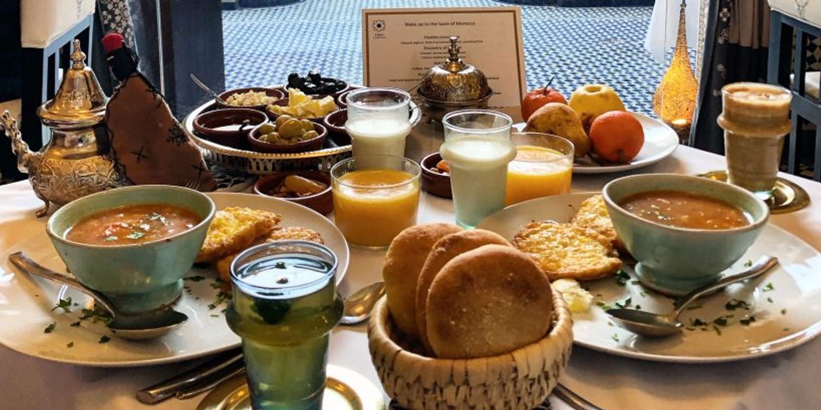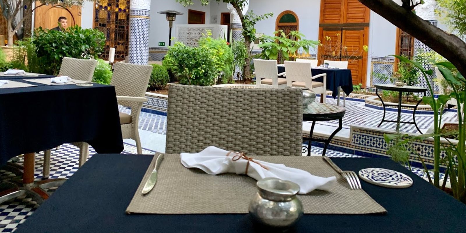 Чтобы максимально распробовать местную кухню, стоит обратить свое внимание на дегустационное меню, которое здесь полностью воспроизводит традиционный обед марокканской семьи: россыпь мезе, свежеиспеченный хлеб, густой чечевичный суп харира и, конечно, тажин и кускус.
