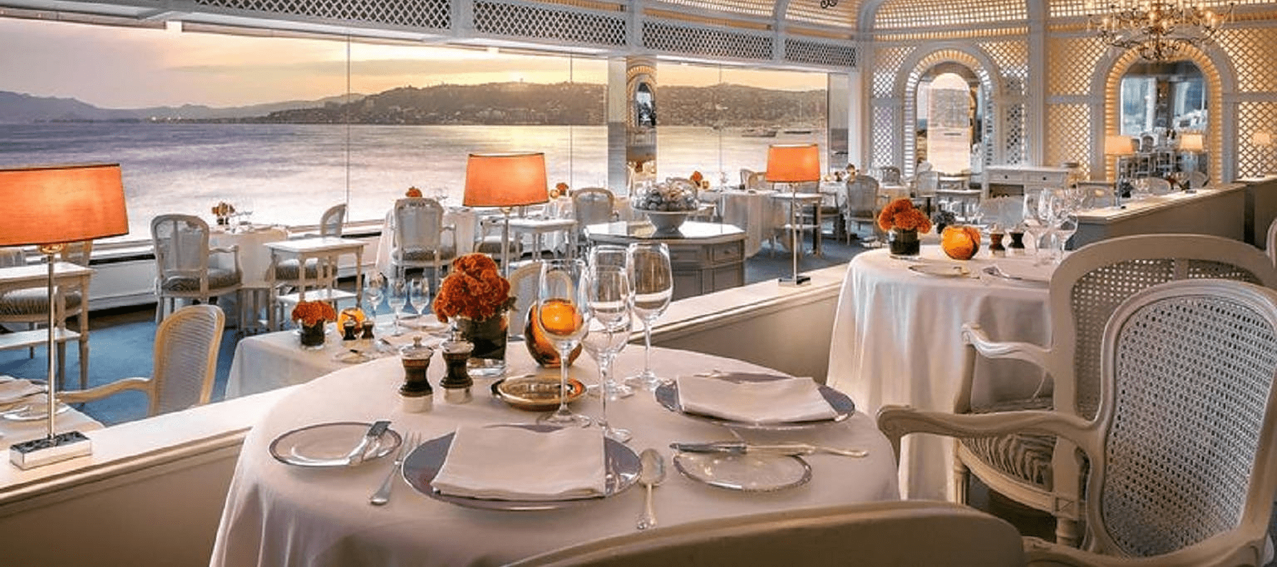 Ресторан буквально купается в нежных лучах солнца Ривьеры и дарит потрясающий вид на Леринские острова.