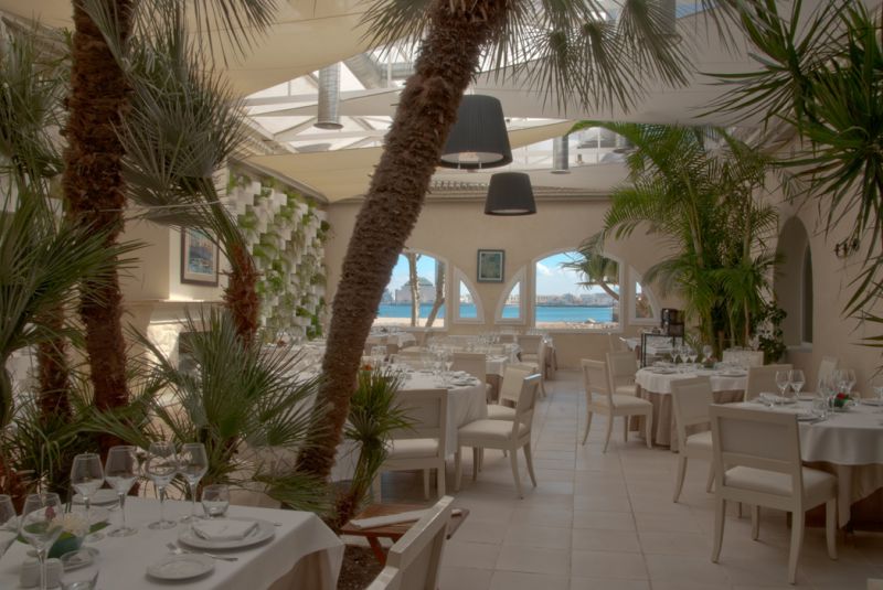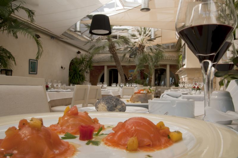 В меню — мидии с дивным сливочно-чесночным соусом, теплый салат из морепродуктов, андалузский салат с трюфелем, омар с соусом из трав, ассорти из морепродуктов, запеченных на углях по-андалузски, королевская паэлья с омаром и др. Богатая карта вин состоит преимущественно из испанских образцов.
