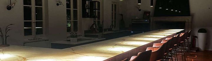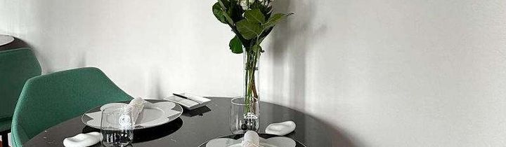 Здесь нет стремления удивить формой — только вкус, доведённый до совершенства. Интерьер сдержан: светлое дерево, стекло, чистые линии, белоснежные скатерти, мягкий свет — всё работает на ощущение покоя и уверенности.