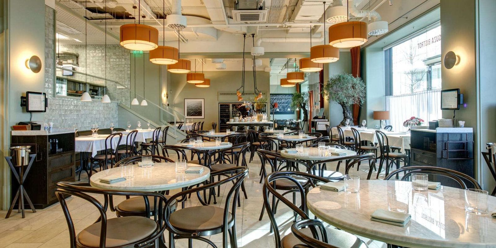 Проект звёздной команды Duo Band, входит в топ-10 лучших ресторанов России по версии Wheretoeat-2023. Лаконичные интерьеры с парижским шиком от Алексея Пенюка: венские стулья, круглые столы, посуда Gien, старомодные оранжевые абажуры и зеркальная стена, добавляющая пространства и воздуха. Ресторан задуман, чтобы не выглядеть франтом с иголочки, но казаться существующим здесь долгие годы.