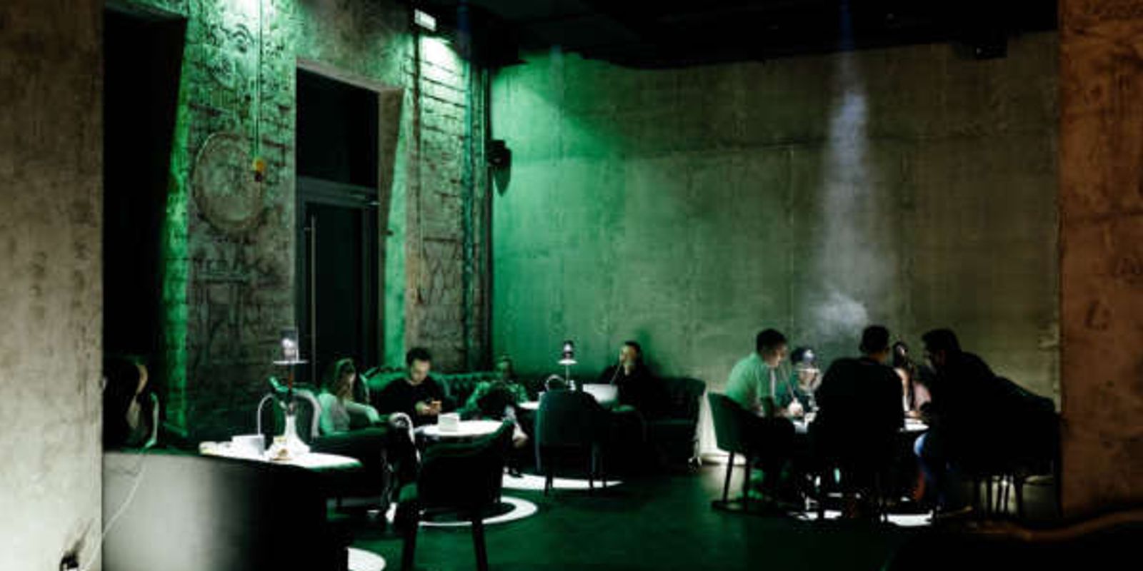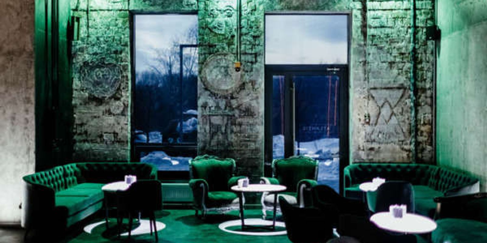 При создании дизайн-проекта этого ультрасовременного лаундж-пространства использовался искусственный интеллект. Нейросети задумали бетонные стены, кожаные диванчики и зеленоватый неоновый свет, подрядчики реализовали в полном соответствии.