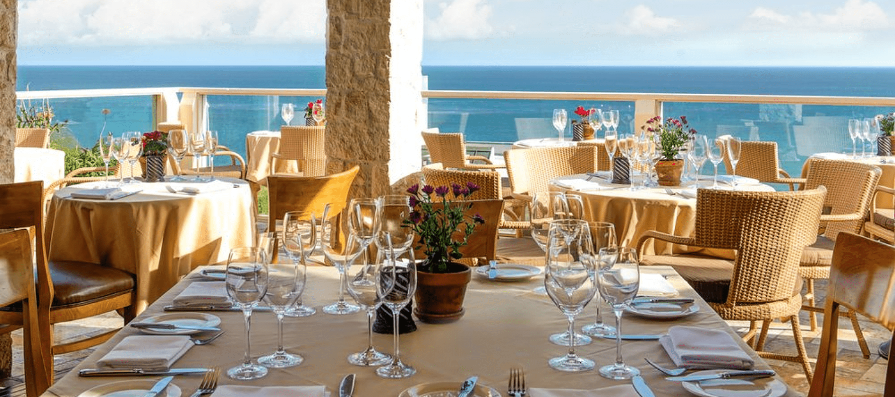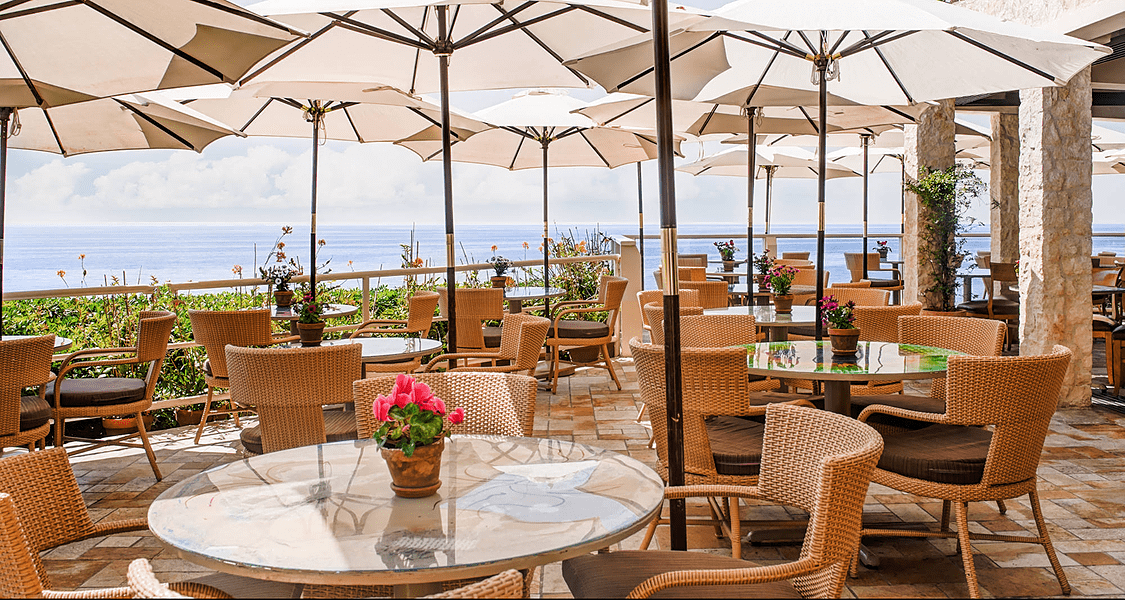Великолепие этого ресторана состоит в том, что из любого столика открывается вид на океан.