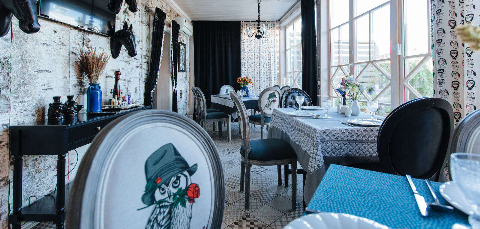 Меню тоже уютное: понятное, домашнее, с любимыми блюдами европейской и русской кухни с интересными авторскими акцентами. Голубцы из мать-и-мачехи, вафли с сиропом из одуванчиков, фермерские козьи сыры — для любителей чего-нибудь необычного; фаршированный карп, салат из печени трески с перепелиными яйцами — для гурманов; борщ, селедка под шубой, домашние соленья — для ценителей русской кухни.