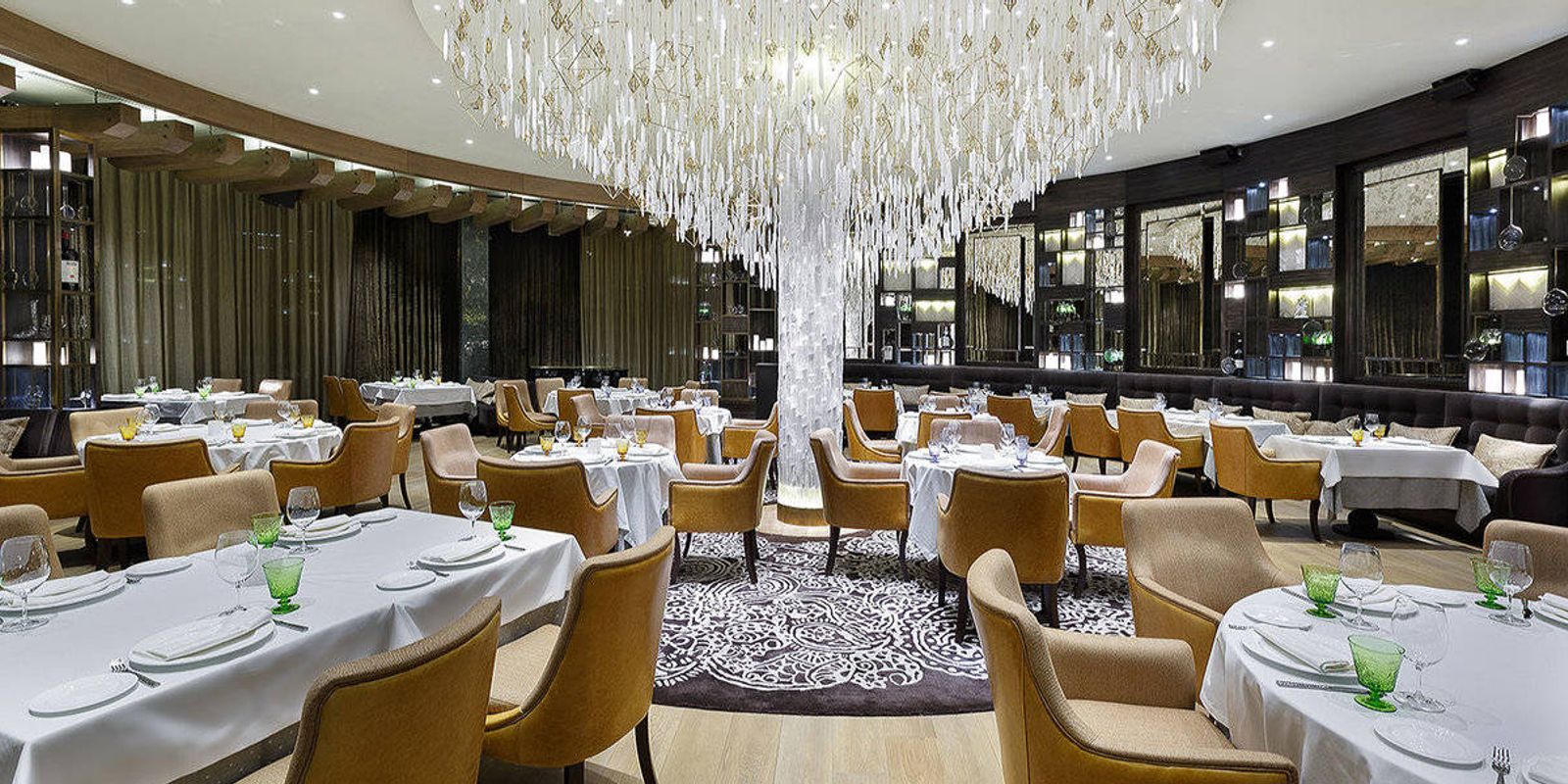 В меню — утончённые блюда в лучших традициях итальянской кухни от шеф-повара Винченцо Вердоша: карпаччо из бретонского лобстера или из оленины с соусом порто, минестроне, крем-суп из тыквы и тигровых креветок и другие блюда.