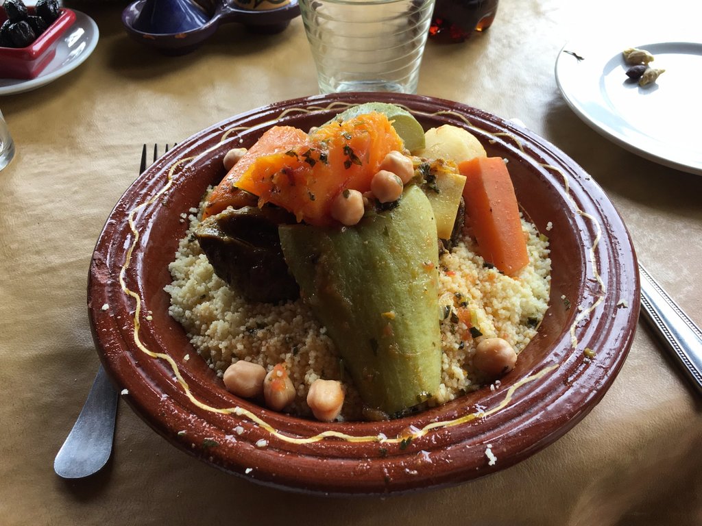 В меню представлены классические блюда марокканской кухни, значительно переосмысленные шеф-поваром: мезе здесь подают на одном просторном блюде, а кебабы — с гарниром из жареного картофеля.