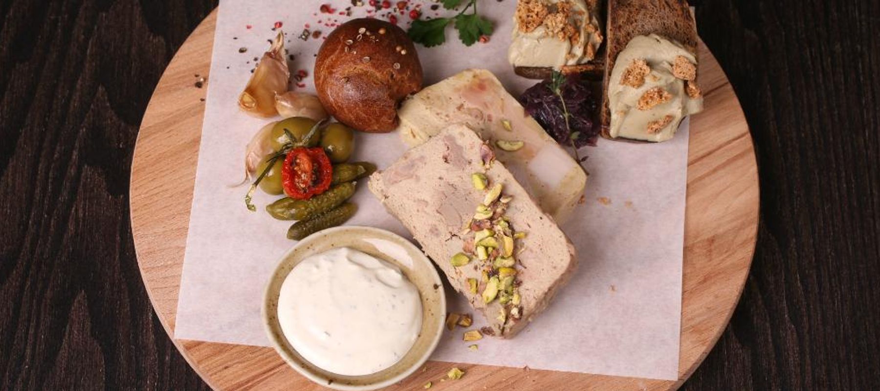 Меню включает ассорти фирменных паштетов: изысканные террины из утки с фисташками, рийеты из скумбрии или лосося и паштеты из утиной печени. Есть дегустационное меню паштетов. По утрам выпекают зерновой хлеб, булочки и пирожки из бездрожжевого теста, французские киши и тарты.