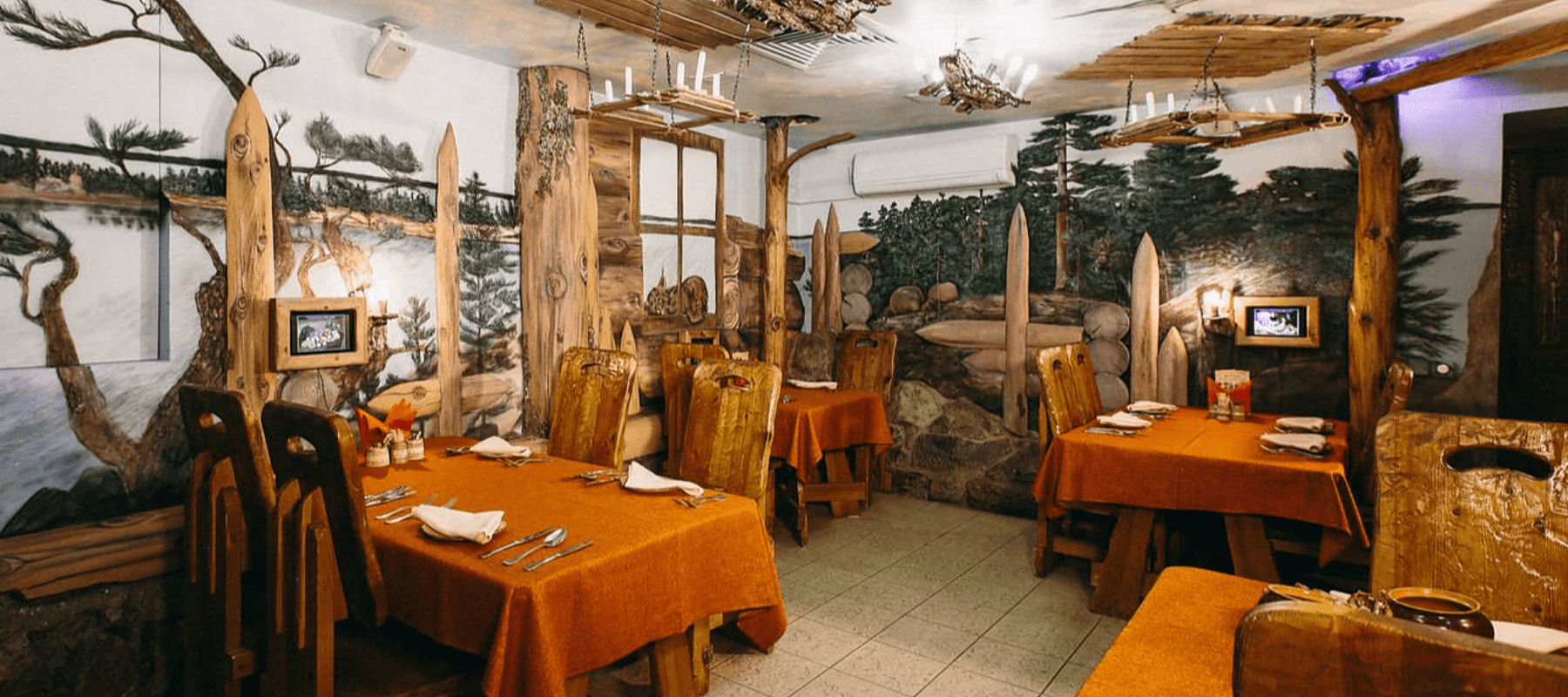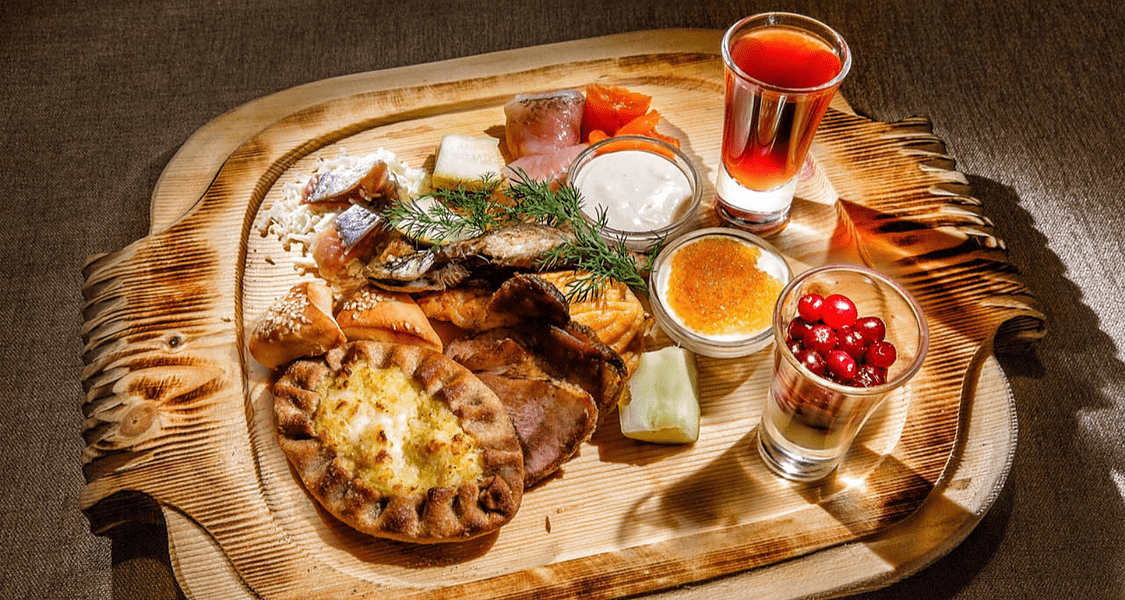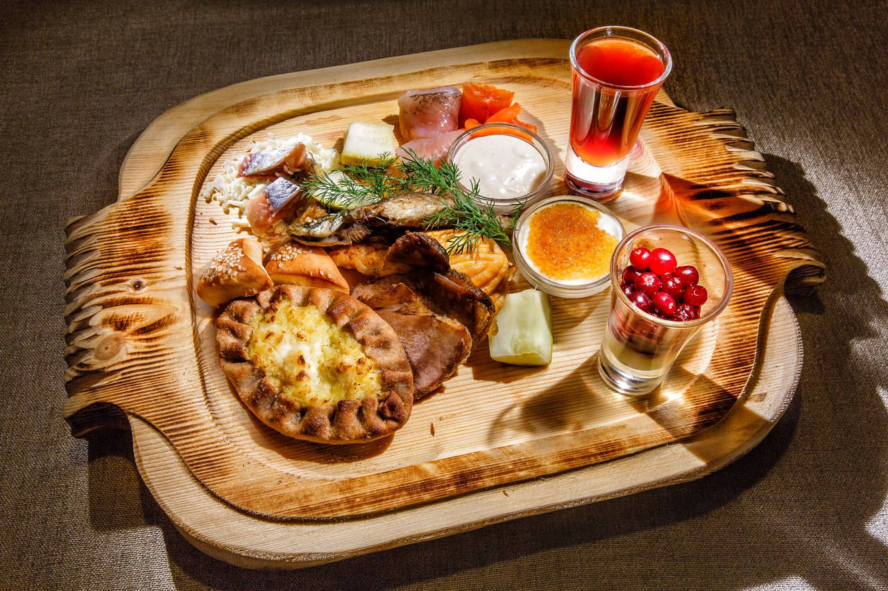 В меню много калиток и сульчины — местной выпечки из ржаной муки с начинками из каши, картофеля, рыбы. Особый раздел — старинные карельские кушанья: мясо с капустой и крупой «сэкали мешанка», «кокач» — выпечка с гороховой начинкой и другие кулинарные раритеты. Запивать все это лучше фирменными настойками или чаем ручного сбора.
