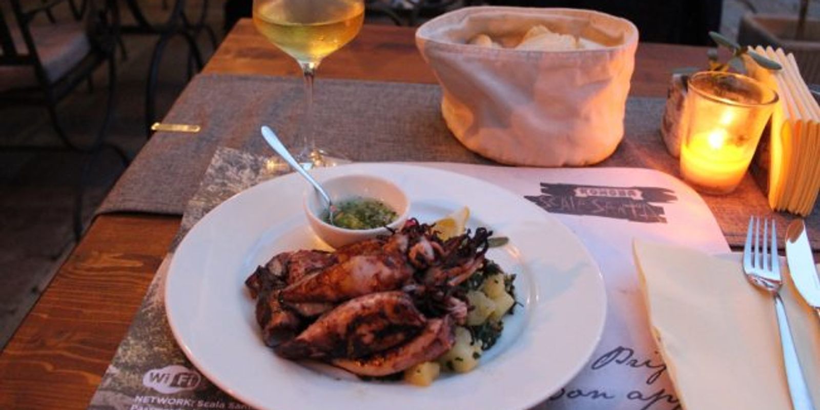 Scala Santa находится в тихом уголке Старого города, у него просторная терраса, и это отличное место, чтобы скрыться городской суеты.