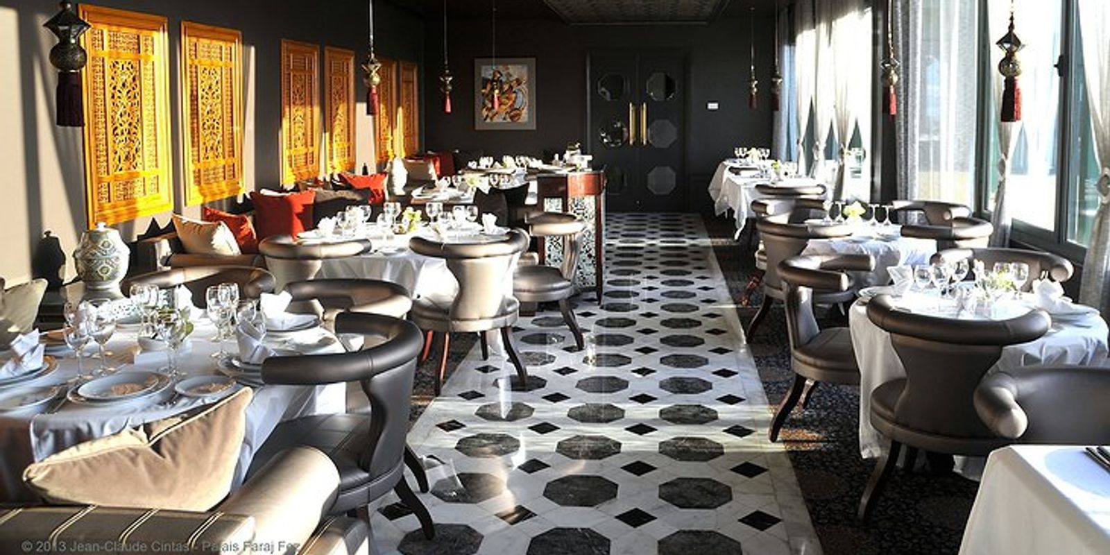 Меню в L'Amandier Palais Faraj — это сумасшедший микс из арабских, еврейских, французских, средиземноморских и марокканских блюд, а также лучший выбор марокканских вин в городе.