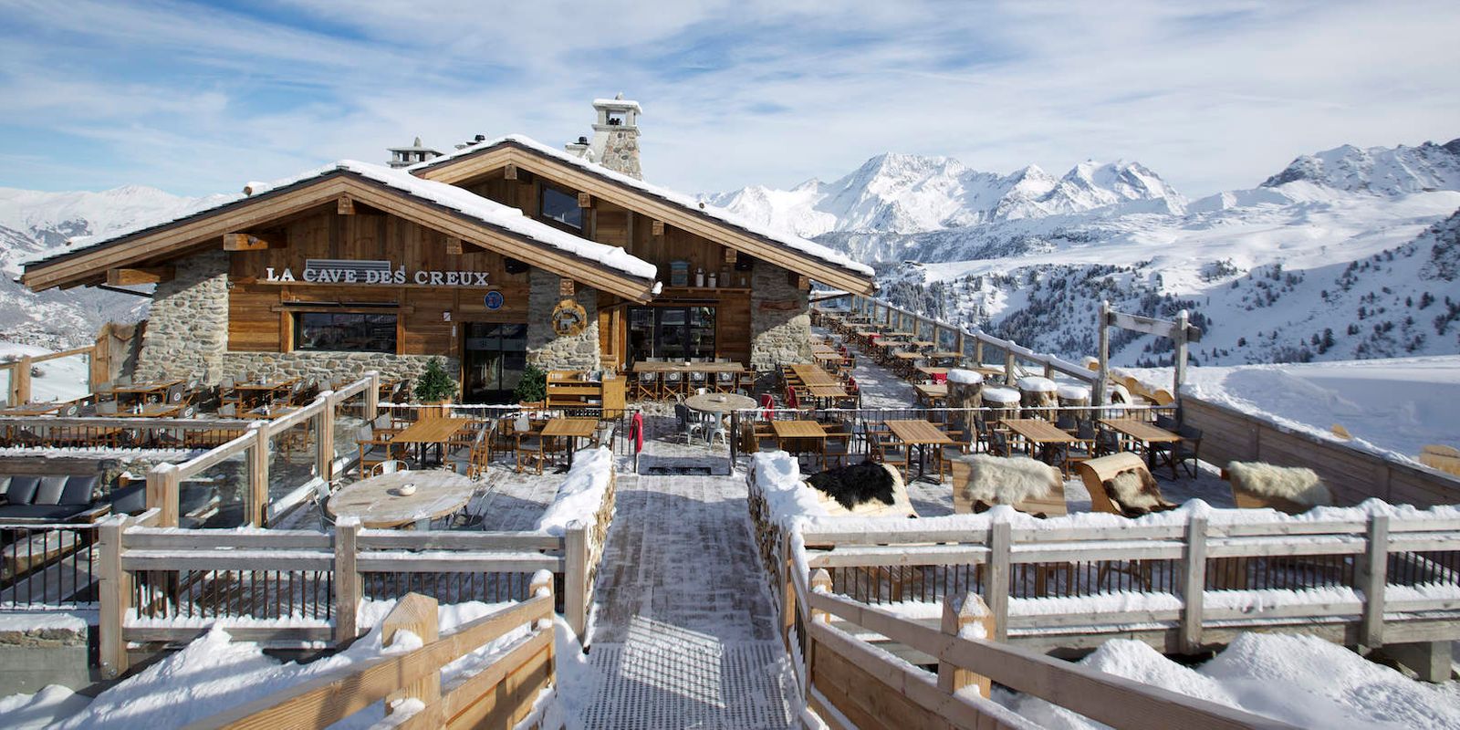 С террасы La Cave des Creux открывается панорамный вид на Монблан.