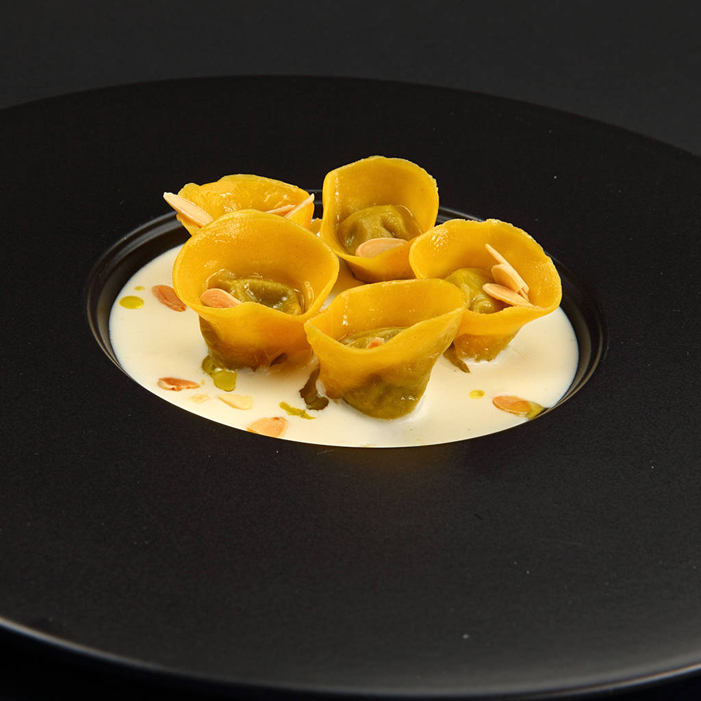 Трапеза в La Ciau del Tornavento никогда не бывает скучной — чтобы придать немного ритма классике, местный шеф-повар добавляет в каждое блюдо нотку оригинальности: к примеру, равиоли здесь подают в соусе из стеблей артишоков, а анчоусы — с соусом из каракатиц.