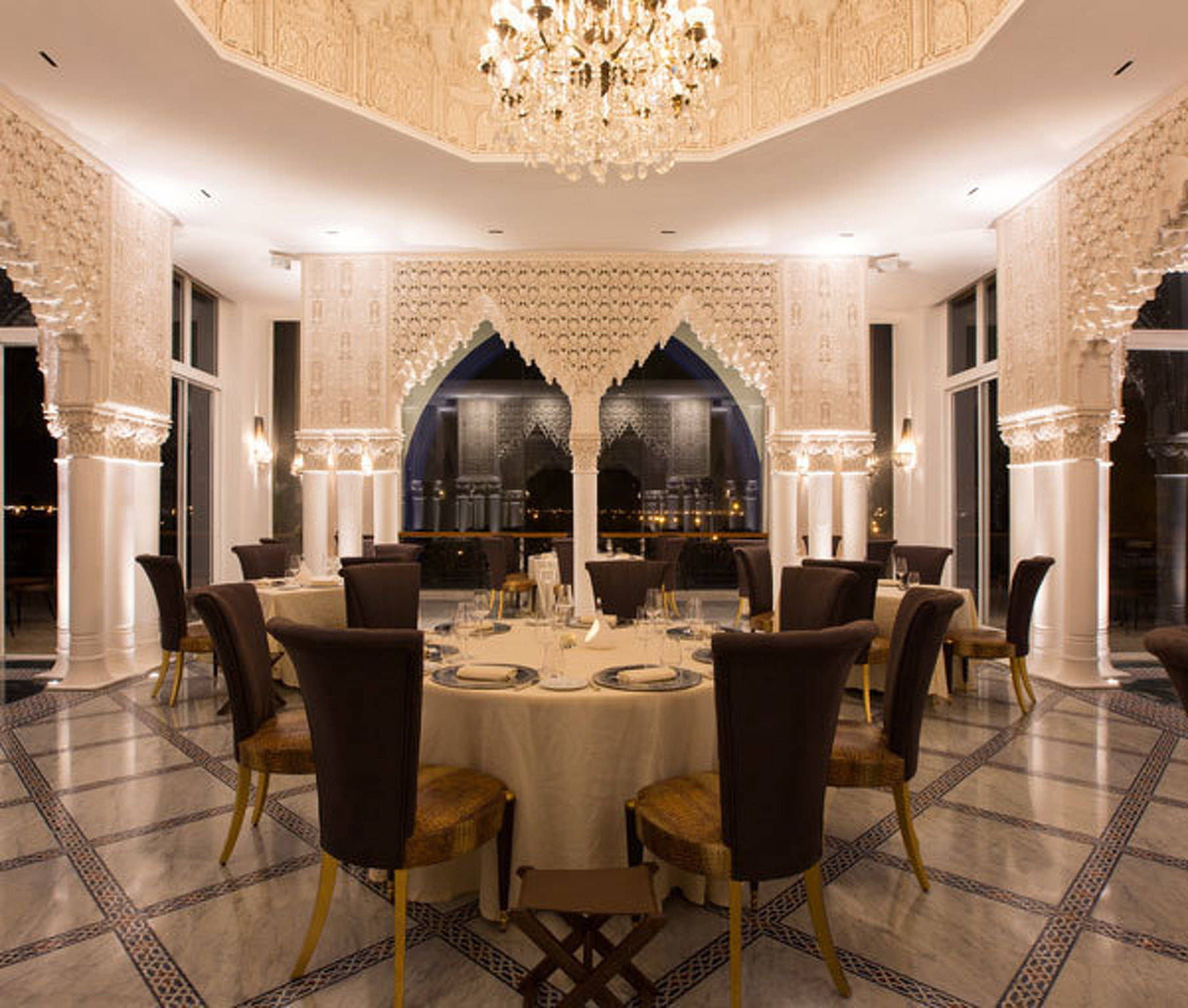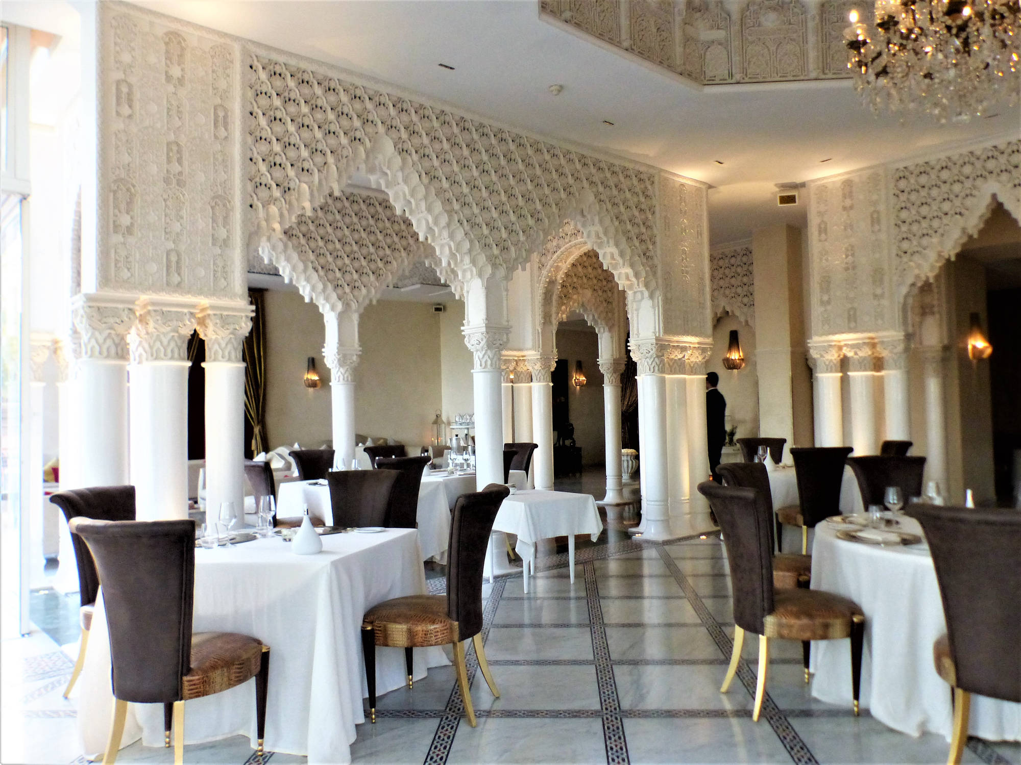 Ресторан расположен на верхнем этаже отеля отеля Palace Es Saadi Marrakech Resort. Он встречает гостей потрясающим декором (белое кружево резного камня и скульптурная штукатурка) и панорамным видом на бассейн, сады и городские огни.