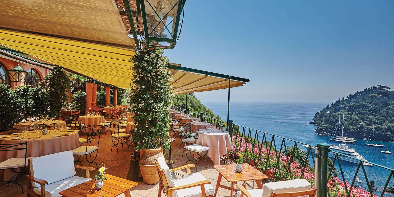 На веранде ресторана La Terrazza в отеле Belmond Splendido, сплошь увитой глицинией, можно отведать местные деликатесы, любуясь видами на залив. Стены зала расписаны нежными цветами и растениями, что величаво оттеняется клеткой черно-белого мраморного пола.