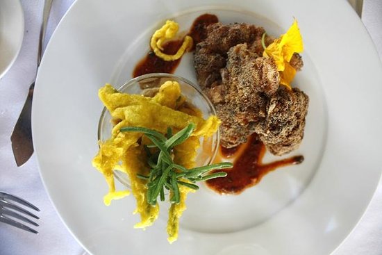 Фирменное блюдо заведения — миниатюрные корнеплоды, целиком запеченные по-французски, с оливковым маслом, помидорами, головками чеснока и тигровыми креветками. Чтобы получить полное представление о марокканской кухне, можно заказать дегустационное меню из 8 позиций.