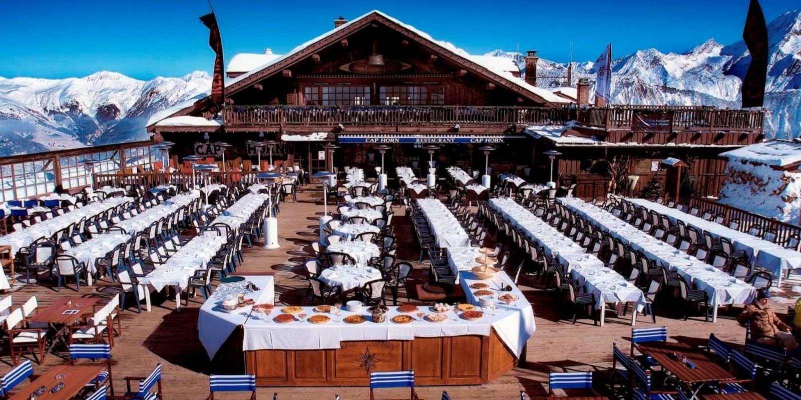 Построенный в 1954 году, Le Cap Horn — старейший горный ресторан в Куршевеле 1850 и один из самых высоких ресторанов в Трёх долинах. Заведение расположено на высоте 2100 м, недалеко от аэропорта Куршевеля, и доступно для любого лыжника. Изначально это было простое убежище в горах, сегодня же «Мыс Горн» является обязательным местом встречи на высоте.