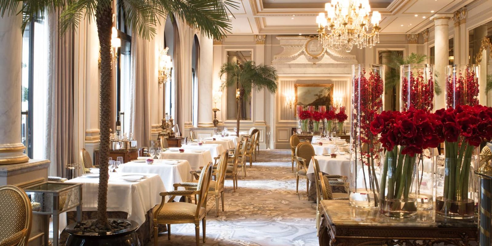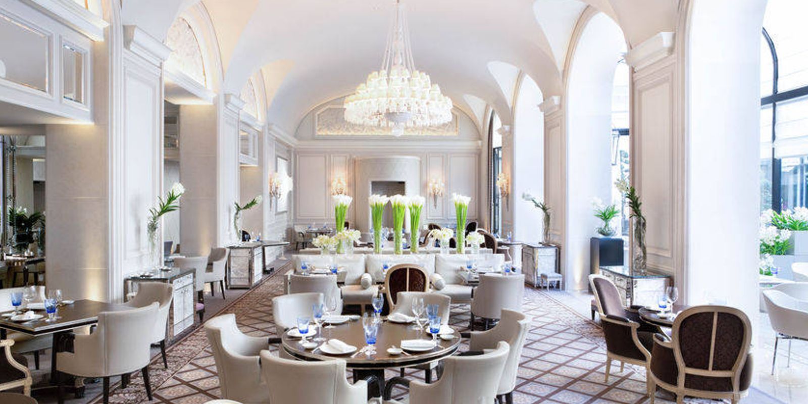 Интерьер ресторана уникален: на стенах — зеркала с гравировкой, кожаные панели и светящиеся бумажные скульптуры художника Джуниора Фрица Жаке, в центре зала висит люстра Baccarat. Хрусталь на люстре и стенах, перекликаясь с щелком и вельветом, серой кожей кресел 30-х гг. и классическими бра, создает для высокой кухни нужную атмосферу.