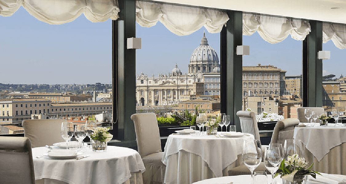 Ресторан Les Étoiles Panoramic Roof Garden находится на верхнем этаже отеля Atlante Star в Риме и славится панорамным видом на Ватикан и окрестности.
