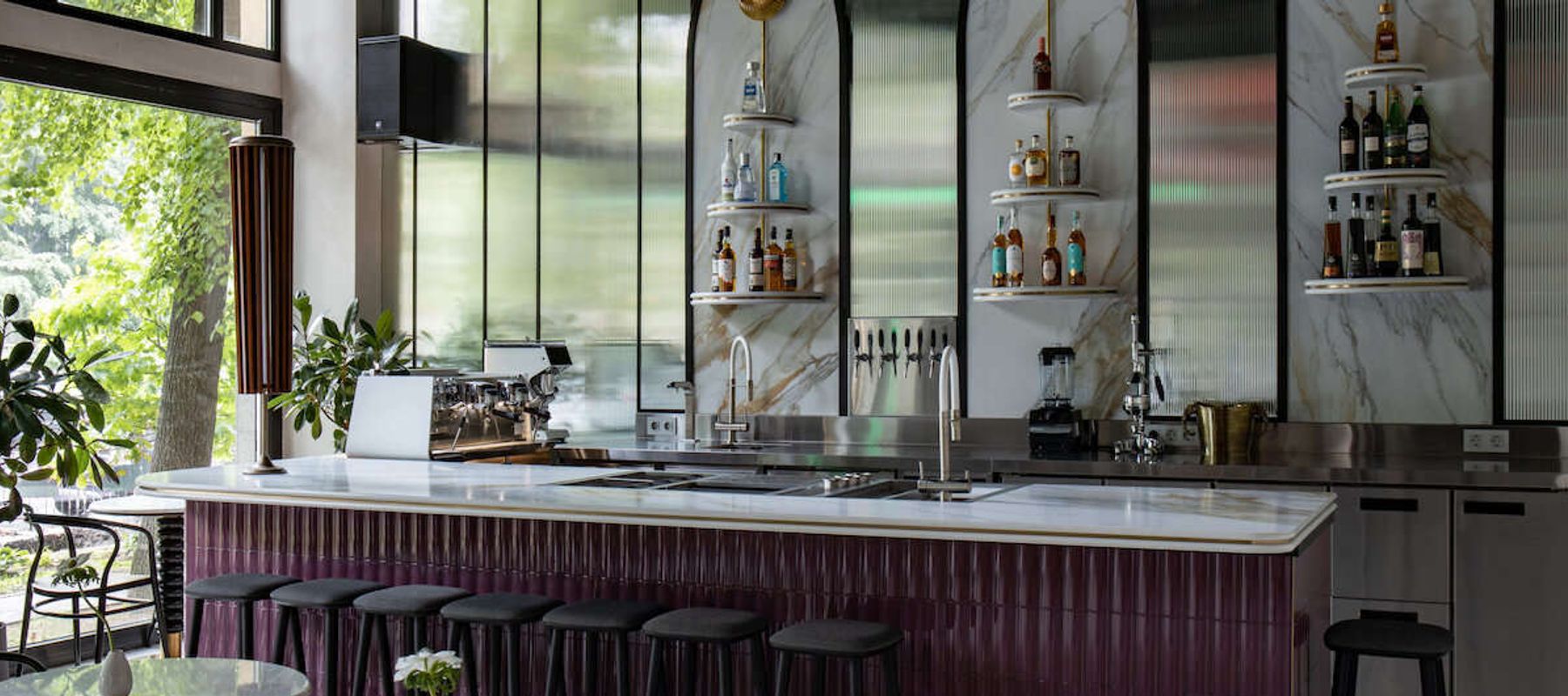 Интерьер разделён на две зоны, каждая из которых погружает в разные атмосферы. Первый этаж с мраморными столами и подвесными фонарями напоминает богемный Париж — здесь можно насладиться устрицами за завтраком или чашкой кофе. Второй этаж, с кожаными диванами и мебелью из красного дерева, предлагает более уютную атмосферу для неспешного ужина.