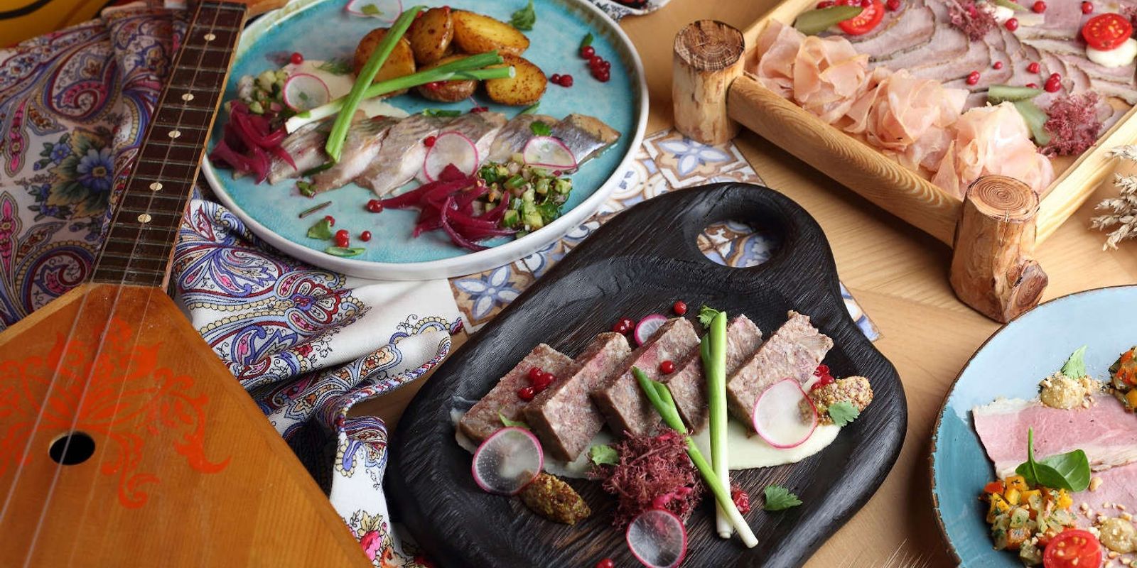 В основе меню — традиционные рецепты славян в современном прочтении. Шеф Максим Смирнов отвечает за качество кухни и сохранение традиций предков. Гостям здесь предлагают блюда русской кухни, которые в заведении переработали в соответствии с новыми кулинарными стандартами. В меню гости найдут пельмени с оленем, борщ с тамбовским окороком и малиной, кутабы с томлёной говядиной, харчо с говядиной и соусом ткемали, блины с икрой или цветочным мёдом, пироги с фермерским сыром, драники с копчёной мраморной говядиной и солёным огурцом.