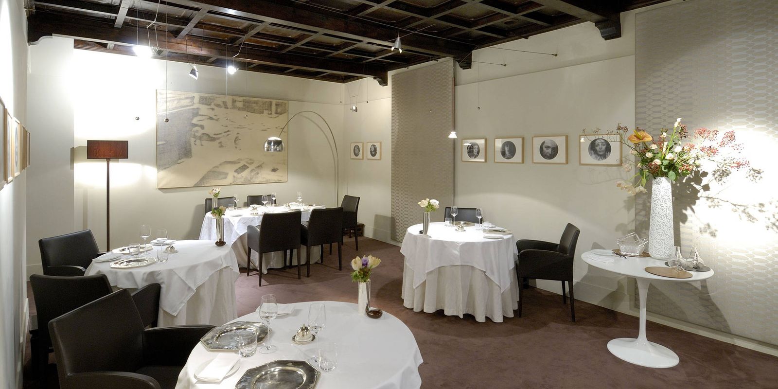 Лучшие поставщики привозят в ресторан самую свежую и качественную продукцию. Винная карта, состоящая из 1300 наименований, поражает разнообразием. Интерьер Osteria Francescana достаточно минималистичен: белые стены с фотографиями местных знаменитостей, круглые столы с элегантными белыми скатертями и серебряными приборами.