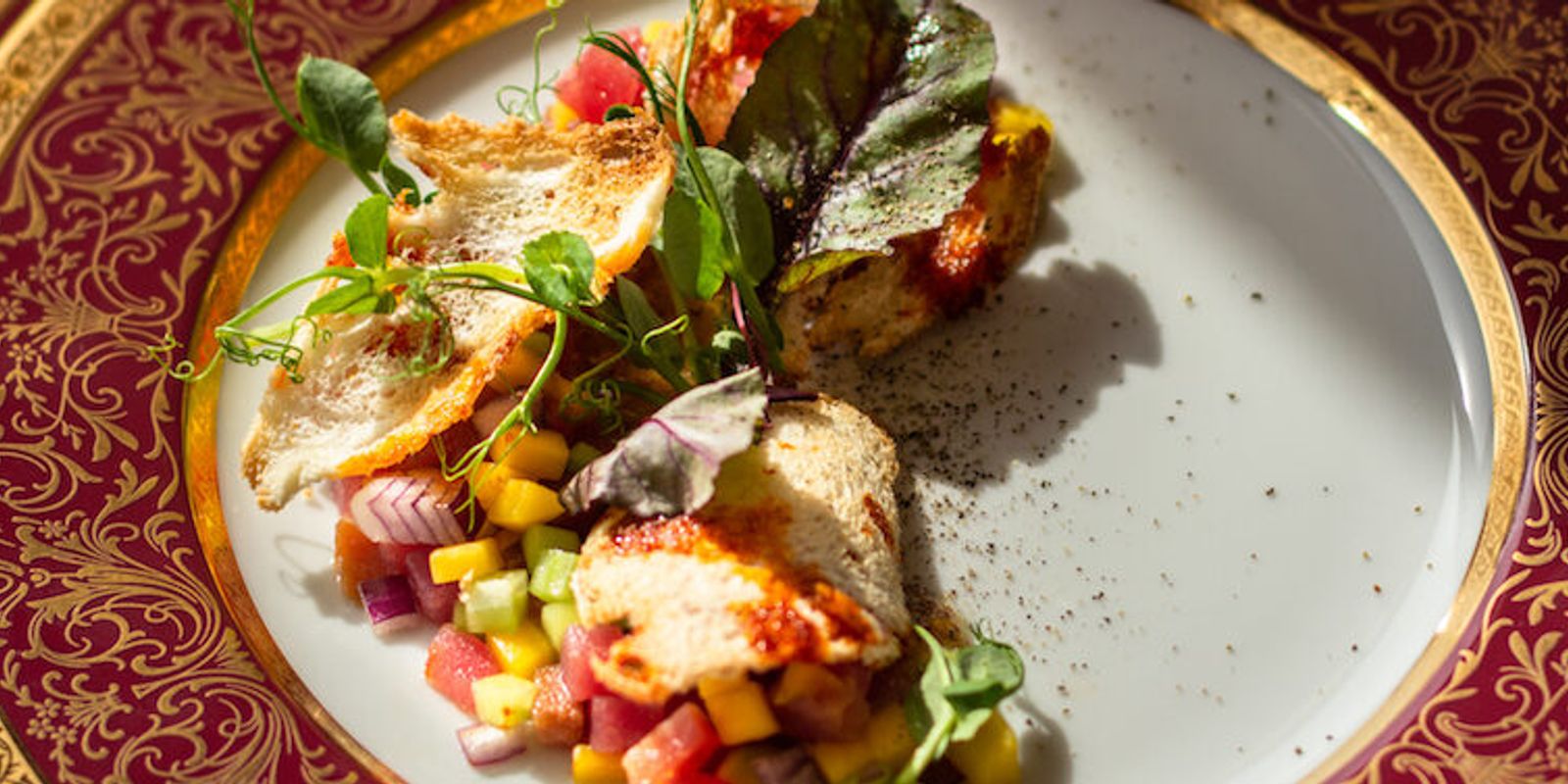 Здесь подают авторские блюда от шеф-повара: салат из осьминога с побегами молодого бамбука, карпаччо с фуа-гра и пюре из маракуйи. А на горячее — стейки и медальоны из мраморной говядины. В винной карте есть не только столовые вина, но и редкие алкогольные напитки.