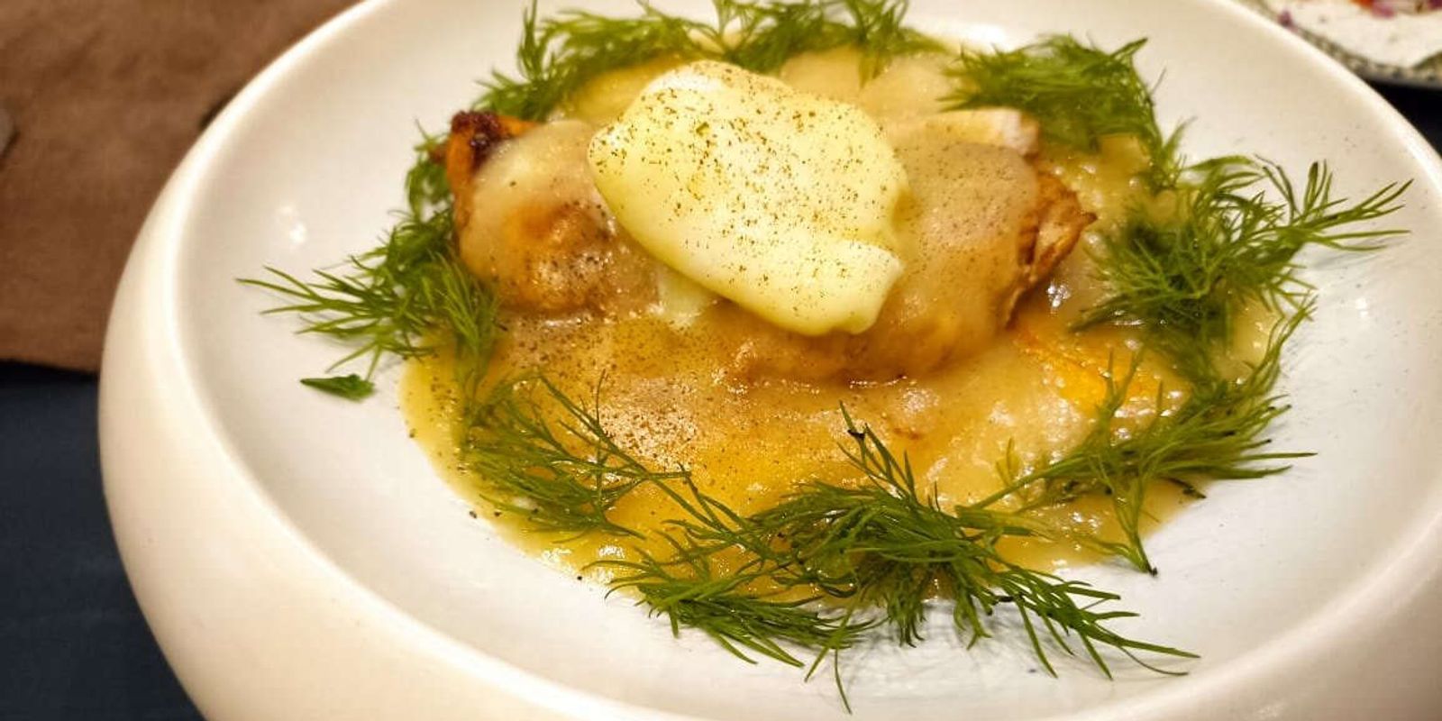 Заведение предлагает все самые популярные хиты европейской, азиатской и кавказской кухонь с изысканной подачей. Одна из основных гордостей ресторана — легендарный гриль-мангал-печь «Хоспер», работающий как на дровах, так и на древесных углях. Раздел горячих мясных и рыбных блюд в меню, собственно, так и называется — ХОСПЕР. Из его произведений можно отведать дорадо и сибаса, стейк ти-бон и говяжьи ребра, нежного тунца татаки, а также бургер со свежеприготовленной котлетой.