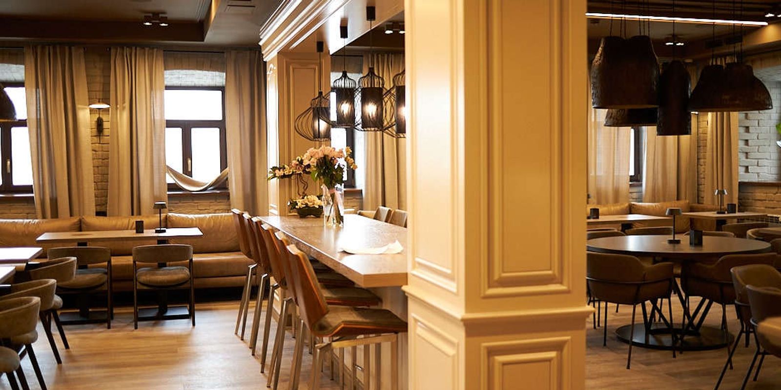 Меню большое, и в нём на равных правах сосуществуют рыба и мясо: татаки из лосося, тартар из говядины, чёрная треска с кускусом, виттело тоннато и прочее интересное. Известный акцент на блюда из собственной коптильни: нежные дорадо и форель горячего копчения, пикантное утиное филе, деликатесный угорь, сало и шпик (тают во рту), восхитительные куриные крылья. В барной карте — европейские вина.