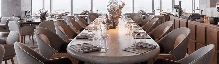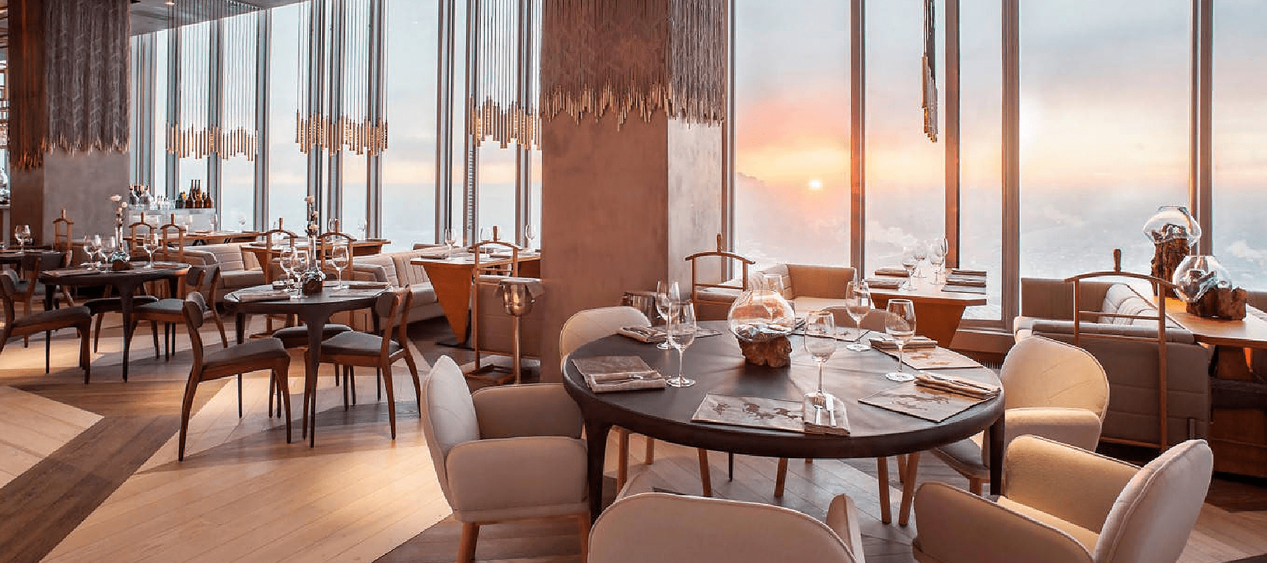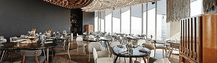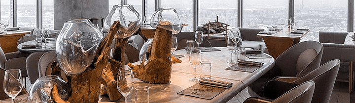 Ресторан построен по принципу ядра кухни и гостевых зон, расположенных по периметру таким образом, что можно сделать полный круг, восхищаясь видами города. Мебель, декор и свет собирали со всего мира. Главная особенность Ruski – уникальная восьмиметровая треххайловая печь.