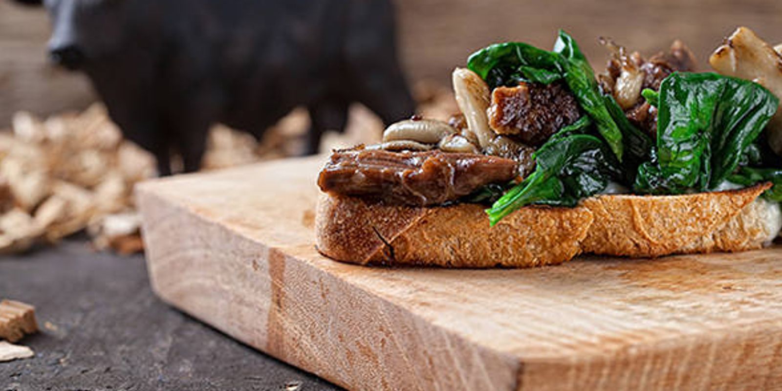 Здесь подают такие блюда и закуски, как тост с телячьими хвостами и шпинатом, тартар с картофелем фри, чизбургер с козьим сыром и розовыми помидорами, прайм-филе миньон с орегано, рибай на кости, говяжьи щёчки с картофельным пюре, томлёные говяжьи ребра и др.