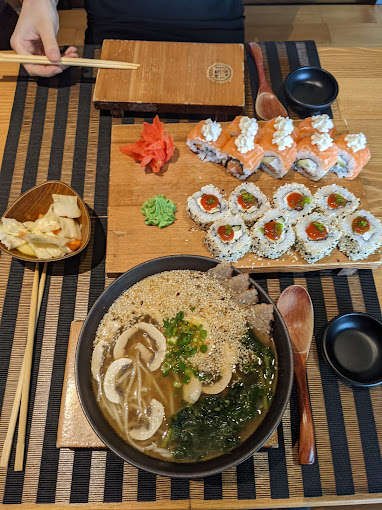 Большой выбор суши-сетов на любой аппетит, креветки и курицы в темпуре, веганские спринг-роллы, коллекция лапши и гёдзе, рамёены, том ям, мисо-суп.