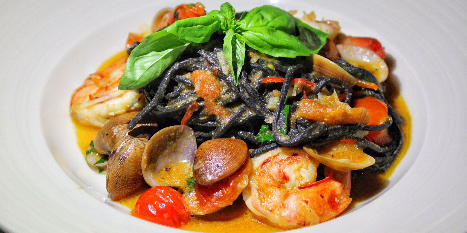 Фирменные блюда ресторана — ароматный суп из бычьих хвостов, креветки на гриле, красный окунь с острым базиликом и др.