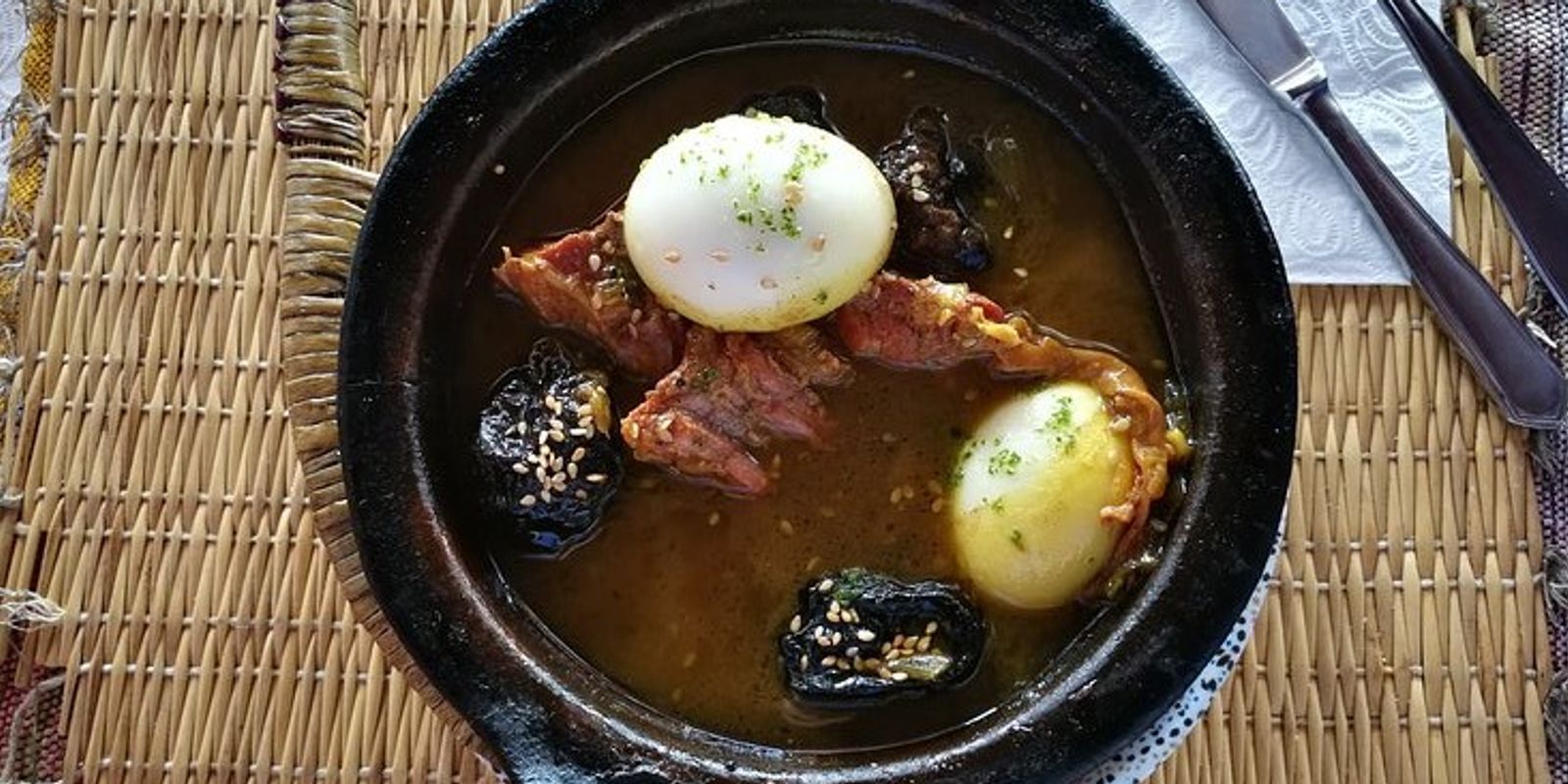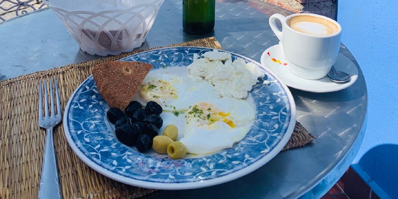 Хозяин заведения не ограничивает меню аутентичными блюдами, используя также испанские и итальянские рецепты. Завтрак, например, можно выбрать марокканский (лепешки батбут, козий сыр, сливочное масло, варенье, мятный чай) или каталонский — с крестьянским хлебом, натертым чесноком, мякотью спелого помидора, квашеными оливками и омлетом.