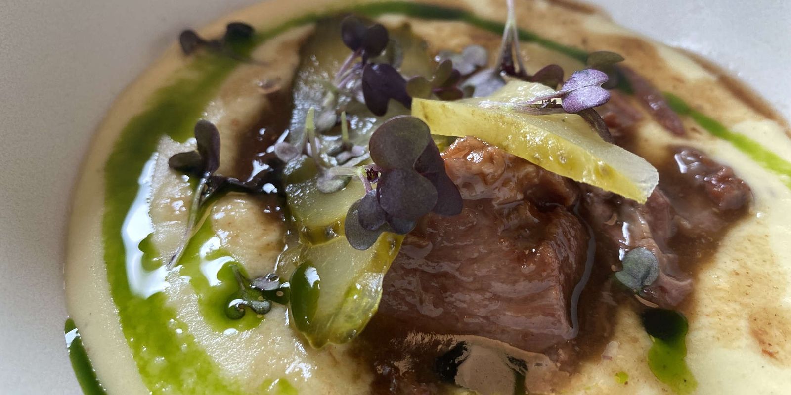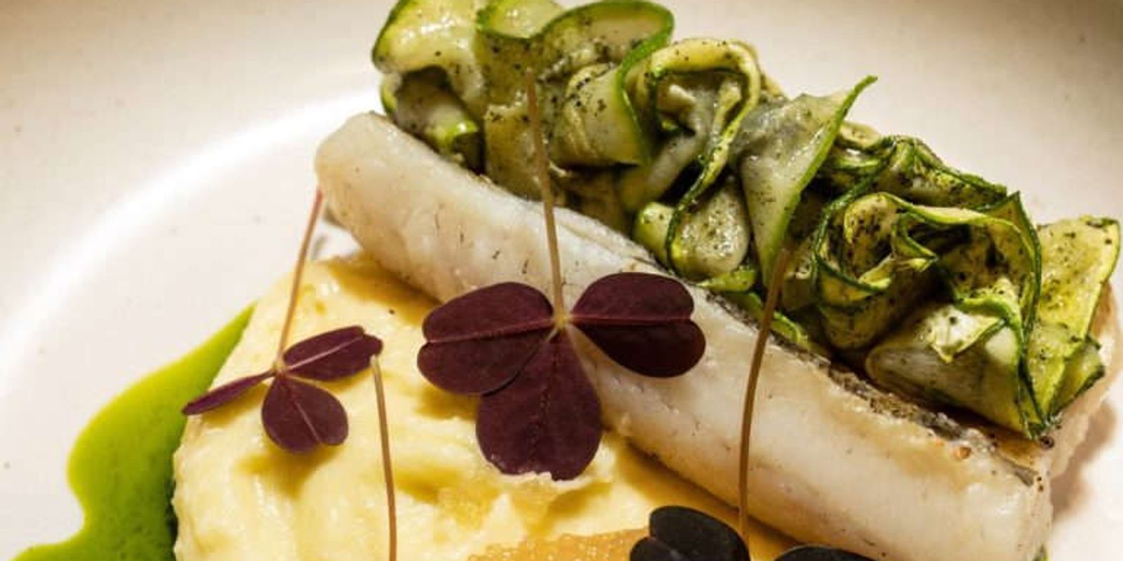 Лосося тут запекают при температуре 90 градусов и сервируют классическим картофельным пармантье, обжаренными цукини и имбирным нуазетом; утиную грудку сопровождают фрикасе из лесных грибов и хрустящей полентой; и делают брускетты с форелью, кремом из сыра шевр и маринованным красным луком — или с телятиной, печёным перцем и вялеными томатами.