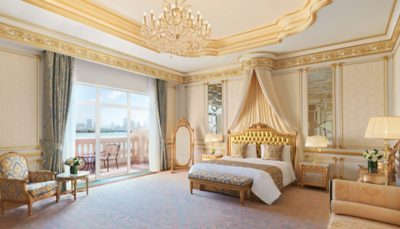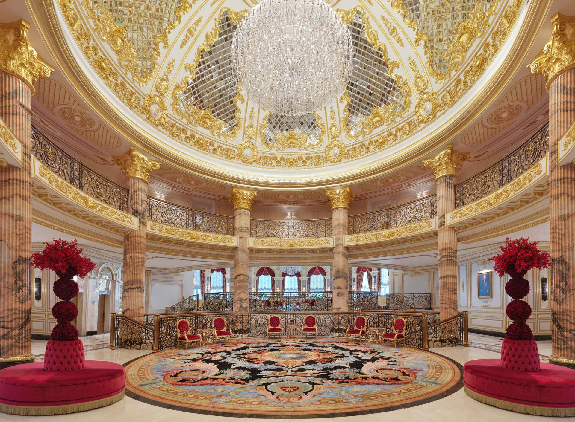 Raffles The Palm Dubai расположен на полумесяце искусственного архипелага Palm Jumeirah и выделяется архитектурой в стиле европейских дворцов. Интерьеры оформлены с акцентом на классику — мрамор, хрустальные люстры, позолота и богатая мебель.